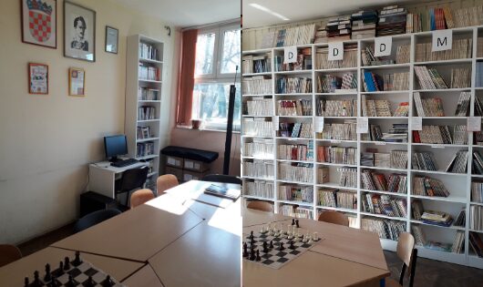 Fotografije školske knjižnice u zgradi škole prije potresa.