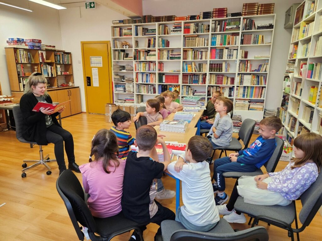 Budući prvašići posjetili su školsku knjižnicu, upoznali su se knjižničarom Nenadom Potkonjakom. Nakon upoznavanja i razgledavanja prostora knjižnice našim dragim posjetiteljima pročitane su dvije zanimljive bajke.