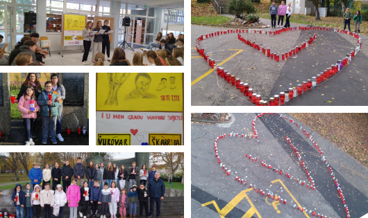 18. studenoga obilježava se Dan sjećanja na žrtve Domovinskog rata i Dan sjećanja na žrtvu Vukovara i Škabrnje. Prisjećamo se grada heroja, svih njegovih branitelja i onih koji su stradali u njemu, prisjećamo se i Škabrnje i svih stradalih civila i branitelja u Škabrnji. Prisjećamo se svih ostalih stradalnika Domovinskog rata, svih branitelja koji su svoje živote ugradili u temelje moderne hrvatske države. Danas smo prigodnim programom u predvorju škole obilježili Dan sjećanja. Učenici 8. razreda su nas povijesnim činjenicama, lirskim tekstovima i prezentacijom prisjetili na zbivanja te ratne '91. g., na grad heroj, sve njegove branitelje i civile stradale u njemu. Minutom šutnje i paljenjem svijeća u dvorištu naše škole odali smo počast njihovoj žrtvi koja je utkana u temelje stvaranja hrvatske države. Zaboravimo li njih, zaboravit ćemo za što su se borili, a njihova žrtva bit će uzaludna. ZATO NE SMIJEMO ZABORAVITI!