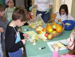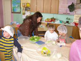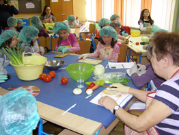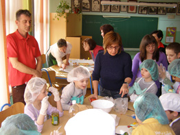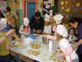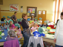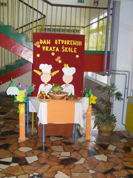 | 24. ožujka u poslijepodnevnim satima učenici mlađih razreda sa svojim razrednicima i roditeljima koji su se odazvali u velikom broju propagirali su zdrav način života. Naglasak je bio na zdravim namirnicama i tjelesnom kretanju kao ravnoteži duha i tijela. Ova akcija održana je u suradnji s DM - om. U tu svrhu osmišljeni su promidžbeni letci s uputama o zdravim namirnicama i nutritivnoj vrijednosti pojedinih kategorija jela. Učenici su zajedno s roditeljima znatiželjno proučavali njihov sadržaj, a onda se krenulo u konkretnu akciju - spravljanje jela i napitaka! Učenici 1. razreda pravili su voćni sok, a 2. razredi salatu od povrća. Pekarske proizvode od integralnog brašna izradili su trećaši, dok se u učionicama 4. razreda pravila voćna salata i voćni gusti sok. |