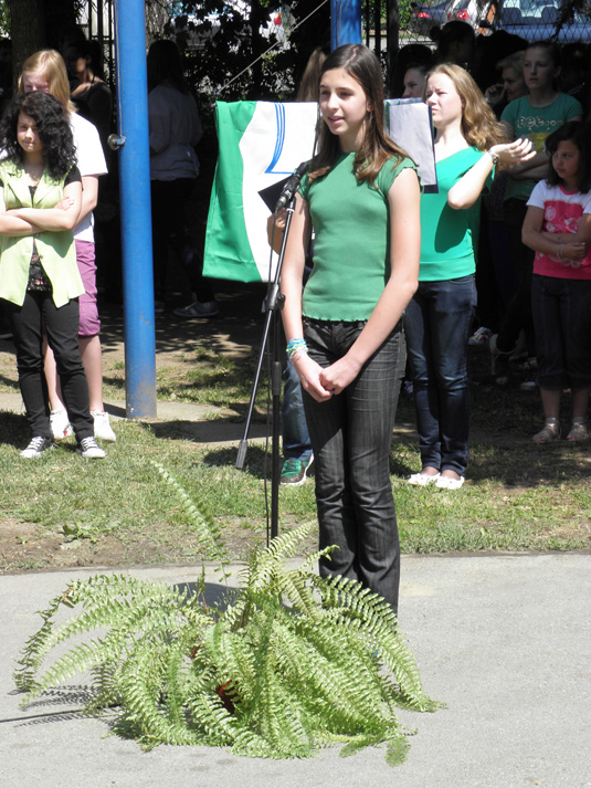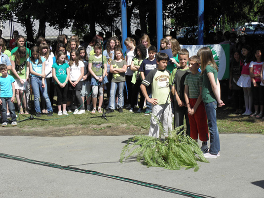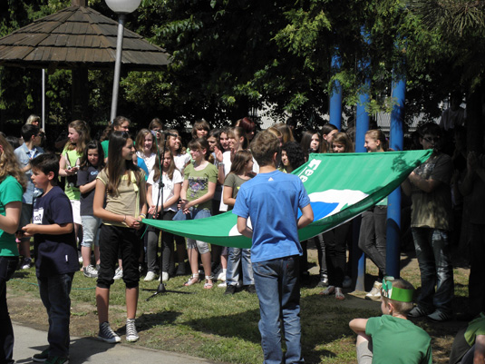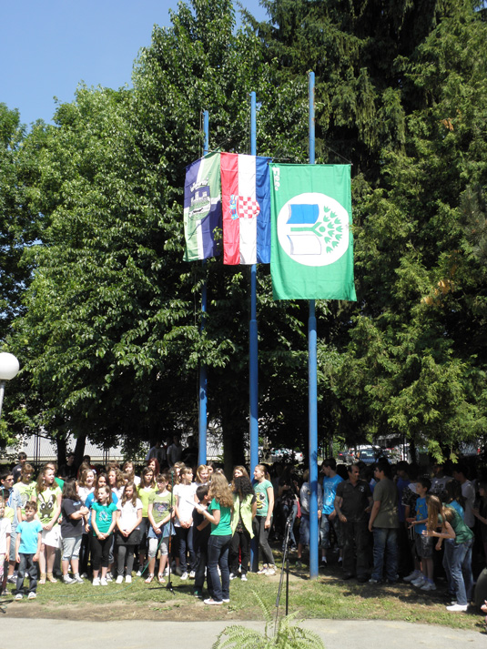 U zelenom, suncem okupanom dvorištu OŠ Ivana Kukuljevića u Sisku 1. lipnja 2011. godine po peti puta svečano je podignuta Zelena zastava Eko-škole. Na prigodnoj svečanosti koju su pripremili učenici i djelatnici škole prisutne goste pozdravila je ravnateljica škole gospođa Željka Birač koja se zahvalila predstavnicima Sisačko - moslavačke županije, predstavnicima Grada Siska, Šumariji Sisak , Vodoprivredi Sisak i gospodinu Borisu Lemaiću koji su učenicima i djelatnicima škole pomogli u realizaciji projekata tijekom protekle dvije godine, a o radu proteklih deset godina govorila je koordinatorica Marina Vavro. |
