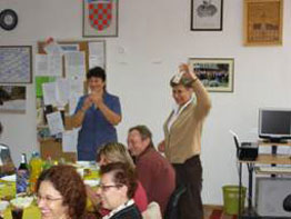 | Posljednje druženje u ovom sastavu proteklo je u zaista prijateljskoj, toploj, ljudskoj atmosferi obojanoj mirisima sjećanja i podsjećanja na ona „dobra stara vremena“.3. listopada 2008. godine u mirovinu smo ispratili dvije dugogodišnje djelatnice naše škole. Naime oprostili smo se od naše učiteljice razredne nastave gđe Ane Umljenović i drage nam učiteljice glazbene kulture gđe Helene Lovreković. | ||