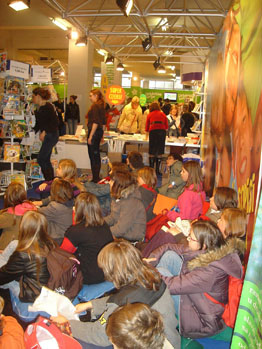 | 14. studenog 2008. učenici koji pohađaju izbornu nastavu ( recitatori, dramska sekcija, novinarska grupa i mladi biolozi ) u pratnji svojih učiteljica hrvatskog jezika Mirjane Drahatusky i Marine Vavro, profesorice biologije Marom Balinčić i knjižničarkom Anom Bošković posjetili su 31. sajam knjiga, učila, glazbe i multimedije - Interliber 2008. Izložbeni prostor ove manifestacije smješten je u paviljonima Zagrebačkog velesajma, gdje je naša mala ekipa od 50-tak članova autobusom stigla u popodnevnim satima. Nakon kraćeg razgleda usputnih štandova sa časopisima put je vodio ciljano do paviljona broj 6 - gdje je učenike i učenice naše škole dočekala razdragana književnica za djecu - Sanja Pilić. | ||