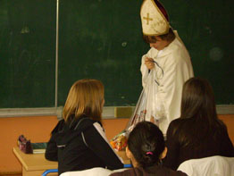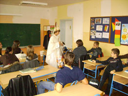I ove je godine dragi nam sveti Nikola pohodio razrede naše škole! Baš nas briga tko vjeruje, a tko ne - ali "on" je došao! Ako ste mislili da mu se raduju samo maleni - pogriješili ste! Svi, ama baš svi s osmjehom na licu dočekali su ovu dragu "osobu", a taj se osmijeh još više naglasio kada su u ruke dobili i poklone! Odgovorno tvrdimo da nitko nije odbio vrećicu sa slatkišima, a dar je uredno dostavljen i onima koji toga dana nisu bili u školi. |
