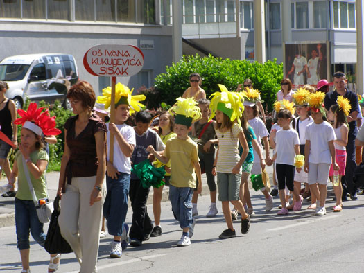 U subotu 23. svibnja 2009. godine učenici nižih razreda naše škole u pratnji svojih učitelja kojima su se pridružili njihovi prijatelji i učitelji iz Područne škole Novo Praćno pridružili su se veseloj već tradicionalnoj manifestaciji u svibnju na sisačkim ulicama pod radnim nazivom Cvjetni korzo. |