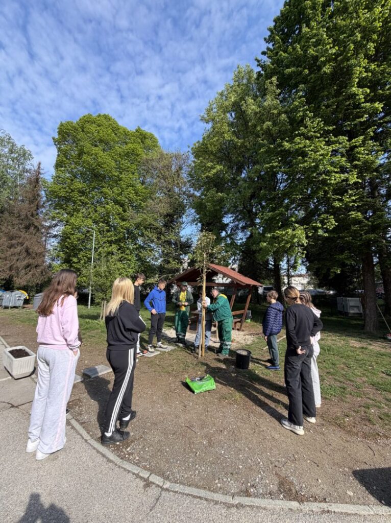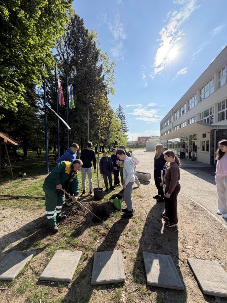 Aktivnost je provedena u suradnji s Gradom i Komunalcem Sisak, kojima zahvaljujemo na donaciji stabla. Obećavamo da ćemo o posađenom drvetu voditi pažljivu i odgovornu brigu, kako bi raslo i uljepšavalo naše školsko dvorište dugi niz godina.