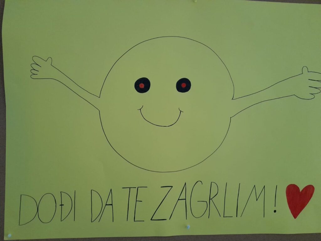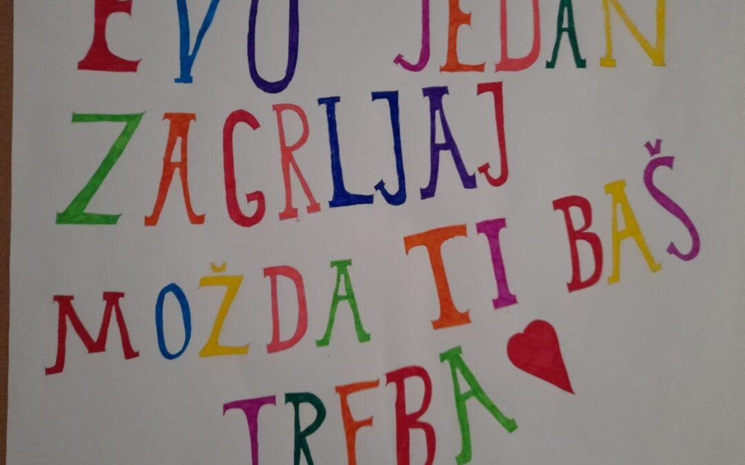 znaku zagrljaja. Učenice i učenici, učitelji i stručni suradnici- baš svi su se grlili.