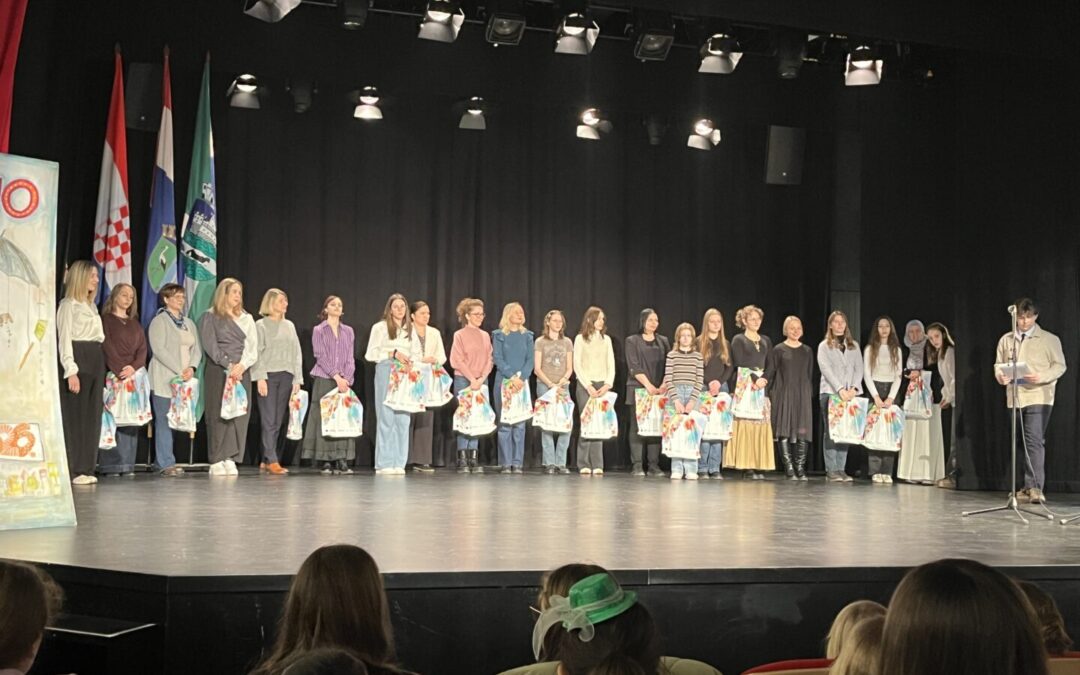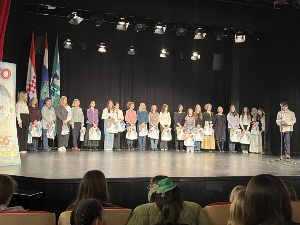 Čestitke našim učenicima – Karolu Viliju Rimayu, Petri Papeš, Tesi Brnić, Evi Domitrović, Zibi Jakopinec, Korini Vidušek, Miji Čatić, Vatroslavu Šimuniću, Viti Vrbanusu, Toyi Jakopinec i Sari Perhat i njihovim mentoricama Željki Čondić, Dobrili Matijašević Juračak i Zrinki Hafizović na uspješnim radovima i izvedbama. Na županijskoj razini predstavljat će nas Toya Jakopinec svojim novinarskim radom te Mia Čatić, Vatroslav Šimunić, Vito Vrbanus, Toya Jakopinec i Sara Perhat dvama dramsko-scenskim skupnim nastupima. Učenicima koji su predloženi za županijsku razinu želimo puno uspjeha na sljedećim razinama smotre.